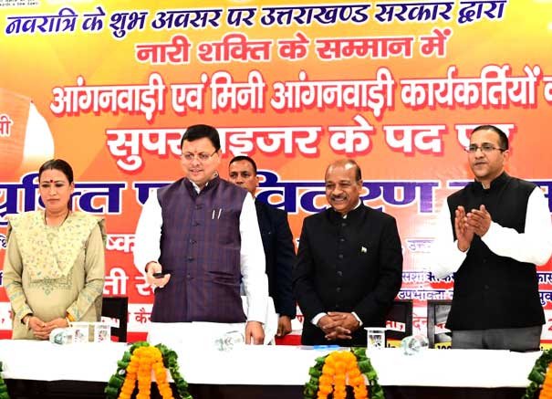 MY BHARAT TIMES, रविवार, 22 अक्टूबर 2023, देहरादून। मुख्यमंत्री पुष्कर सिंह धामी ने प्रदेश की 167 आंगनबाड़ी एवं मिनी आंगनवाड़ी कार्यकर्तियों को सुपरवाइजर के पद पर नियुक्त होने पर नियुक्ति पत्र वितरित किए। इस अवसर पर उन्होंने नन्दा गौरा योजना एवं मुख्यमंत्री महालक्ष्मी किट योजना के ऑनलाइन पोर्टल का शुभारंभ भी किया। मुख्यमंत्री पुष्कर सिंह धामी ने कहा कि दुर्गा अष्टमी के दिन 167 आंगनबाड़ी और मिनी आंगनवाड़ी माताओं-बहनों को सुपरवाईजर के पद पर नियुक्ति पत्र प्रदान करने का सौभाग्य प्राप्त हो रहा है।उन्होंने कहा आंगनवाड़ी कार्यकर्तियों की समाज में अहम भूमिका है। बच्चों के पालन पोषण में आंगनवाड़ी की अहम भूमिका है।