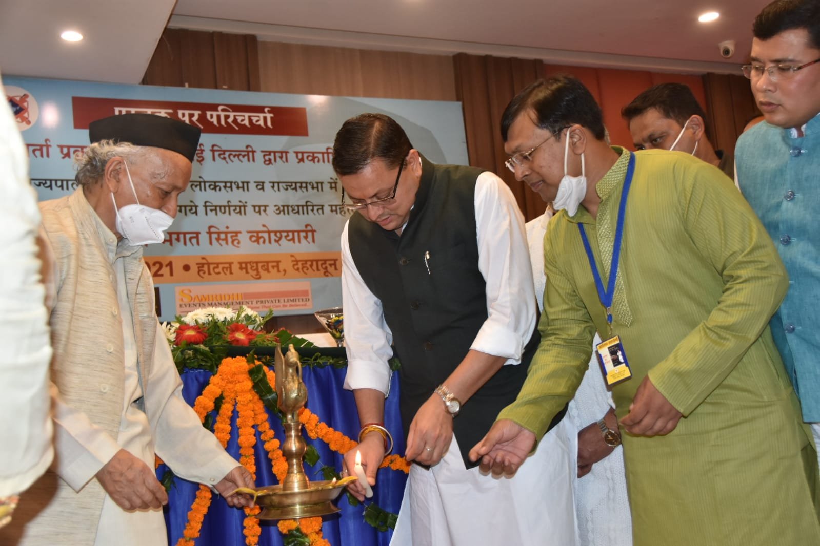 MY BHARAT TIMES, 31 अगस्त 2021, देहरादून (सू.वि.)। सोमवार को राजपुर रोड स्थित होटल में महाराष्ट्र के राज्यपाल श्री भगत सिंह कोश्यारी के लोकसभा व राज्यसभा में दिए गए भाषणों एवं याचिका समिति के अध्यक्ष के रूप में दिए गए निर्णयों पर आधारित पुस्तक “भारतीय संसद में भगत सिंह कोश्यारी“ पुस्तक के संबंध में उनकी उपस्थिति में परिचर्चा का आयोजन किया गया। मुख्यमंत्री श्री पुष्कर सिंह धामी द्वारा कार्यक्रम में मुख्य अतिथि के रूप में प्रतिभाग किया गया। वरिष्ठ साहित्यकार पद्मश्री लीलाधर जगूड़ी ने कार्यक्रम की अध्यक्षता की।