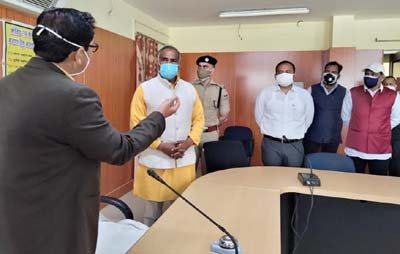 उन्होंने बताया कि बॉर्डर पर आने वाले सभी की सैंपलिंग 24 घंटे शत प्रतिशत की जा रही है। उन्होंने बताया कि वर्तमान में लगभग 1000 लोगों की सेम्पलिंग प्रतिदिन की जा रही है जिसको और बढ़ाने का प्रयास किया जा रहा है। जिलाधिकारी ने बताया कि कोरोना के नियमों का पालन नही करने वालों का सख्ताई के साथ चालान किया जा रहा है। 4315 लोगों के मास्क ना पहनने पर, सामाजिक दूरी पर 944 लोगों के चालान काटे गए तथा 17380 फ्री मास्क बांटे गए। उन्होंने बताया कि हमारे द्वारा अब लोगों के सेम्पल लेते ही उन्हें दवा किट देने का प्रयास भी किया जा रहा है। बैठक के बाद प्रभारी मंत्री ने कोविड़ कंट्रोल रूम का निरीक्षण कर अधिकारियों को आवश्यक दिशा-निर्देश दिए। गौरतलब है कि प्रदेश में कोरोना संक्रमण की रोकथाम के लिए प्रदेश के कैबिनेट मंत्रियो को जिलेवार प्रवंधन व अनुश्रवण की जिम्मेदारी दी गयी है ।