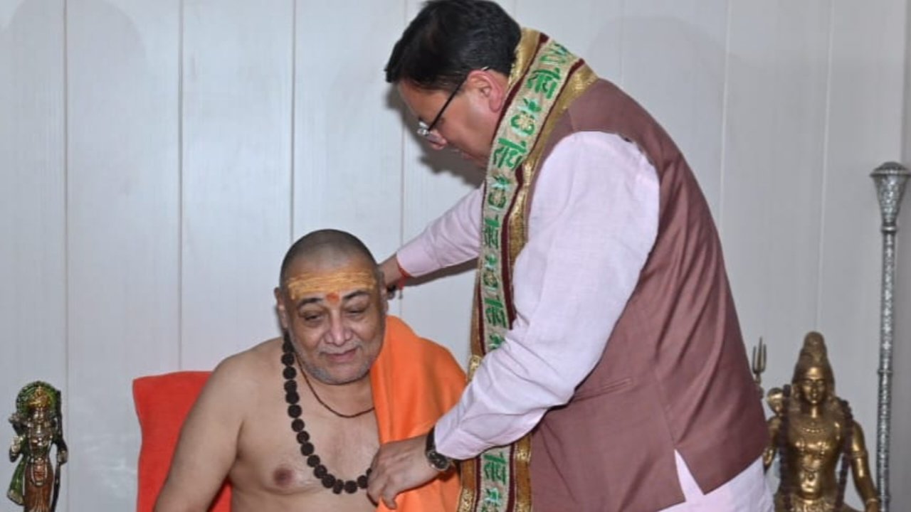 मुख्यमंत्री पुष्कर सिंह धामी ने जगतगुरू स्वामी राजराजेश्वराश्रम से शिष्टाचार भेंट कर आशीर्वाद प्राप्त किया