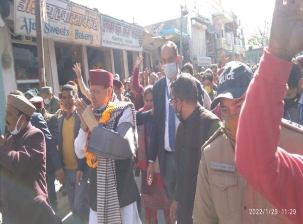 MY BHARAT TIMES, 29 जनवरी 2022, उत्तरकाशी । उत्तराखंड विधानसभा चुनाव के लिए मुख्यमंत्री पुष्कर सिंह धामी ने उत्तरकाशी जिले के चिन्यालीसौड़ पहुंच डोर-टू-डोर कैंपेन किया। उन्होंने चिन्यालीसौड़ पहुंच यमुनोत्री विधानसभा सीट से भाजपा प्रत्याशी केदार सिंह रावत के समर्थन में वोट की अपील की। चुनावी प्रचार अभियान शुरू करने से पहले सीएम धामी ने मनकामेश्वर मंदिर पहुंच भगवान का आशीर्वाद लिया।