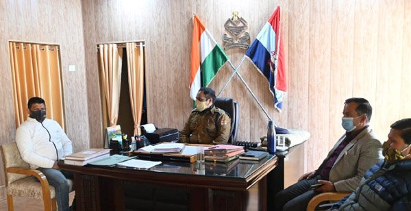 MY BHARAT TIMES, 08 जनवरी 2022, अल्मोड़ा। कोविड को हराने के लिए अल्मोड़ा पुलिस को व्यापर मंडल का भी साथ मिल रहा है। व्यापार मंडल द्वारा बाजार में जागरूकता कार्यक्रम आयोजित कर लोगों को जागरूक करने पर एसएसपी अल्मोड़ा ने व्यापर मंडल की सराहना की। शुक्रवार को अल्मोड़ा व्यापार मंडल अध्यक्ष श्री सुशील साह व उपाध्यक्ष श्री राजेंद्र प्रसाद द्वारा वरिष्ठ पुलिस अधीक्षक अल्मोड़ा डॉ. मंजूनाथ टीसी से मुलाकात कर व्यापार मंडल अल्मोड़ा द्वारा कोरोना महामारी को फैलने से बचाने हेतु चलाए जाने वाले अभियान की जानकारी दी गई।