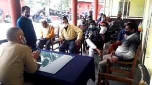 MY BHARAT TIMES, PITHORAGARH, पुलिस अधीक्षक सुखबीर सिह, पिथौरागढ़ के आदेशानुसार, पुलिस उपाधीक्षक राजन सिंह रौतेला, पिथौरागढ के निर्देशन में, प्रभारी निरीक्षक कोतवाली रमेश तनवार, पिथौरागढ, की अध्यक्षता में आज कोतवाली पिथौरागढ में गोष्ठी का आयोजन किया गया, जिसमें आगामी ईद उल फितर “मीठी ईद” के दृष्टिगत आपसी भाईचारा /सौहार्द व शांति एवं कानून व्यवस्था बनाए रखने, तथा वर्तमान में कोविड-19 संक्रमण के दृष्टिगत सरकार द्वारा जारी दिशा-निर्देशों का पालन करने व उक्त पर्व को सकुशल संपन्न कराए जाने के सम्बन्ध में गोष्ठी का आयोजन किया गया, जिसमें थाना क्षेत्रान्तर्गत निवास करने वाले मुस्लिम समुदाय के व्यक्ति उपस्थित रहे । मीटिंग के दौरान उपस्थित सभी गणमान्य व्यक्तियों से उनकी समस्याएं/ सुझाव सुने गए एवं आगामी ईद उल फितर “मीठी ईद” के दौरान शांति एवं कानून व्यवस्था बनाए रखने हेतु बताया गया । गोष्ठी के दौरान वैश्विक महामारी कोविड-19 से बचाव संबंधी जारी दिशा-निर्देश (गाइडलाइंस) से अवगत कराते हुए नियमों का पालन करने हेतु निर्देशित किया गया ।