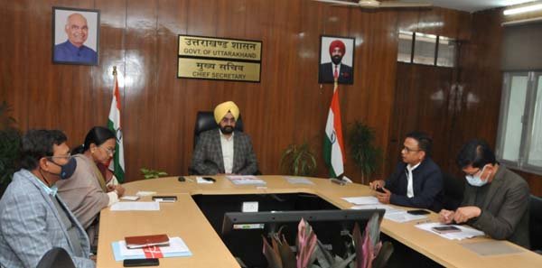 इस अवसर पर सचिव श्री शैलेश बगोली सहित वीडियो कांफ्रेंसिंग के माध्यम से सभी जनपदों के जिलाधिकारी भी उपस्थित थे।