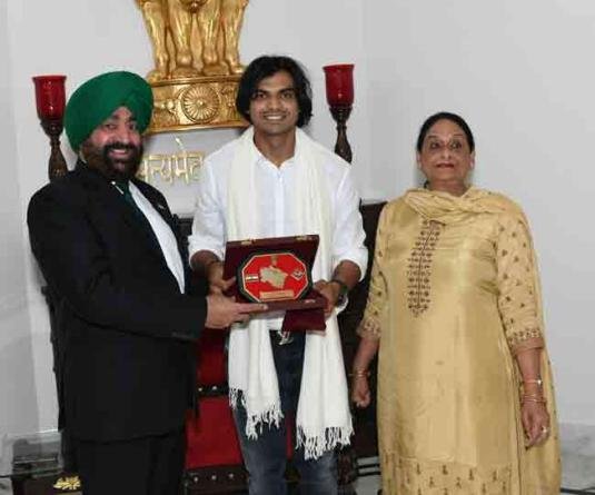 राजभवन में ओलंपिक स्वर्ण पदक विजेता नीरज चोपड़ा ने राज्यपाल लेफ्टिनेंट जनरल गुरमीत सिंह से शिष्टाचार भेंट की