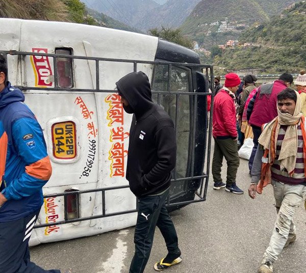 MY BHARAT TIMES, 24 जनवरी 2022, टिहरी गढ़वाल। आज एक यात्री बस संख्या UK12PB-0144 जो ऋषिकेश से पौड़ी जा रही थी, समय करीब 2:30 बजे जनपद टिहरी गढ़वाल के देवप्रयाग थाना क्षेत्रान्तर्गत पौड़ी तिराहे के पास ब्रेक फेल होने के कारण सड़क पर पलट गयी। बस में क़रीब 20-22 यात्री सवार थे जिनमें से 05 यात्रियों को सामान्य चोटें आयी हैं। दुर्घटना में किसी जानमाल का कोई नुकसान नहीं हुआ है।
