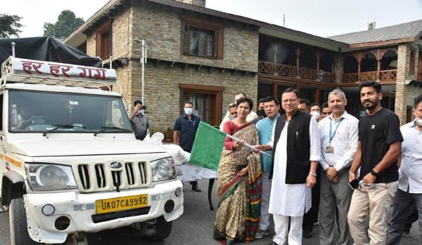मुख्यमंत्री पुष्कर सिंह धामी ने यूनिवर्सिटी ऑफ पेट्रोलियम एंड एनर्जी स्टडी द्वारा प्रदान की गई खाद्य सामग्री के वाहनों का फ्लैग ऑफ किया