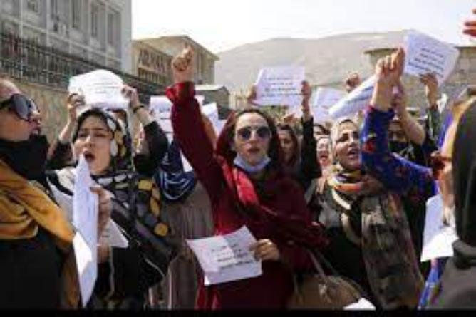 महिला प्रदर्शनकारी लगातार देश में अफगान महिलाओं के लिए समान अधिकार की मांग कर रही